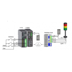 Et eller flere X-15s ekspansionsmoduler kan tilsluttes en X-400 eller X-600M controller med et båndkabel. Båndkablet giver både strøm og kommunikation til udvidelsesmodulerne.