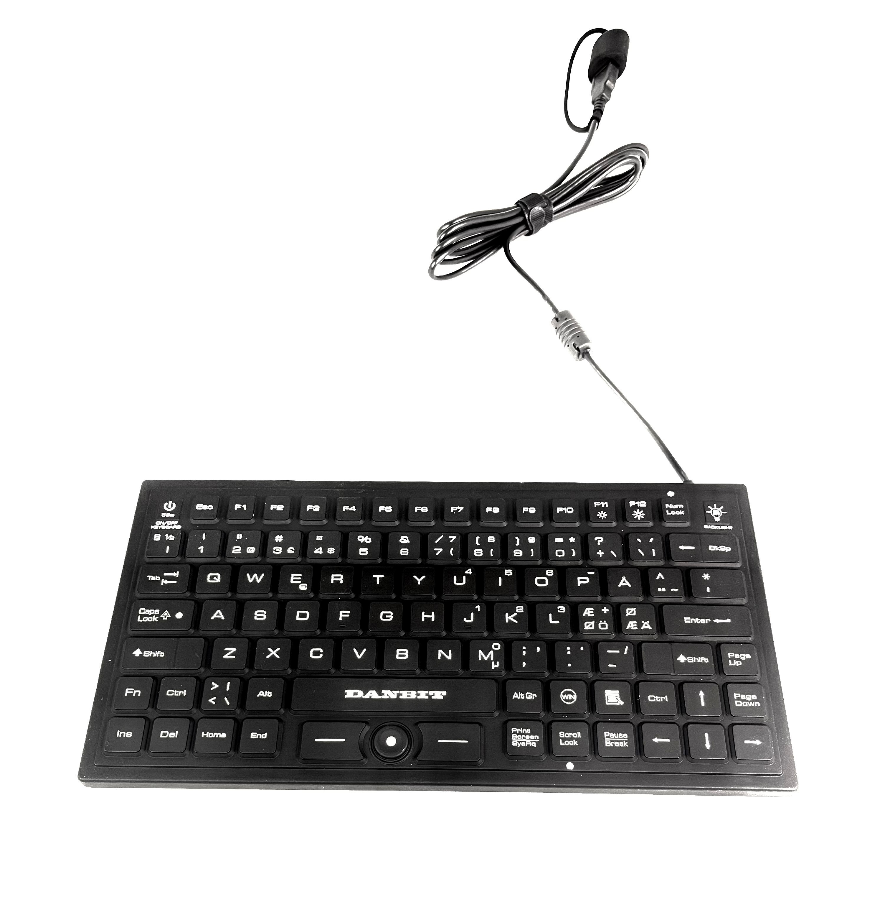 IP68 anti-bacterial silicone keyboard with Track Point - USB - LED backlight, Nordic character set