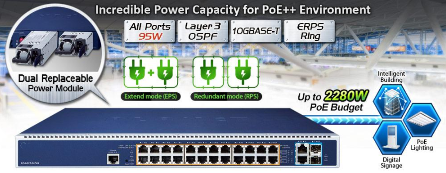10-port managed switch 8 x 10/100/1000Mbit RJ45. Fiber 2 x 100/1000Mbit SFP, -40 - +75°C 12-48VDC, 24VAC