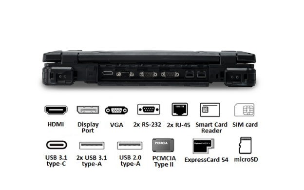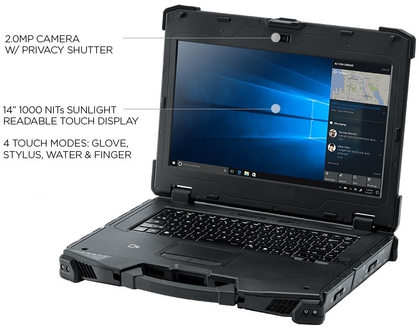 Skærm 14.0” FHD (1920 x1080) with 1000 nits DynaVue® sunlight readable display with capacitive multi-touch screen User selectable touch mode for Finger/Water, Glove, or Stylus programmable function