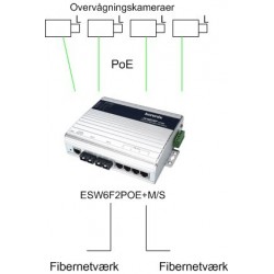Kan forsyne andre enheder på netværket med strøm via netværkskablet (Power over Ethernet eller PoE), så en strømforsyning til disse enheder er overflødig. Det kræver selvfølgelig at enhederne understøtter PoE. Har funktioner til alarmering ved fejl via bl.a. relæudgang og e-mail, administration via webside, automatisk reset når systemet hænger og prioritering af vigtig trafik (QoS). Alt dette samt DIN skinne montering, et solidt IP31 tæt aluminiumskabinet og et driftstemperaturområde fra -10 til 60°C gør denne switch til et godt valg.