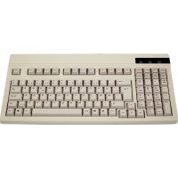 Beige tastatur til USB - 104 taster - Dansk tegnsæt. 21 gennemsigtige knaphætter til placering af funktionsmærkat